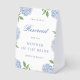 This beautiful design features an all around frame of blue hydrangea blooms and your custom text on the front and back. Use the template form to add your information.