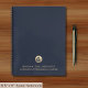 Stay organised and make notes in style with our classic blue legal notebook. The solid blue background and brushed gold legal-themed logo offer a refined look that's ideal for law firms and legal professionals. Whether you're jotting down ideas, meeting notes, or case details, this notebook is a functional and stylish addition to your legal toolkit.