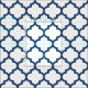 Classic Blue Moroccan ogee trellis pattern on white fabric (Small pattern version, use the "Customise It" tab to easily change the scale and direction of the pattern to suit your project). This versatile quatrefoil pattern fabric is available as machine washable 56" wide combed cotton, 54" wide pima cotton, 58" wide cotton twill, 60" wide polyester poplin, 58" wide woven polyester or linen which has a width of 54 inches and is dry clean only. Available as swatches, fat quarters, or by the yard. Printed in the U.S.A. A choice of perfect cloth fabrics in modern colours for home decor, upholstery, quilting, crafts, apparel, applique or other textile DIY projects.