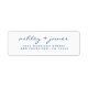 The Classic Blue Script Return Address label features elegant blue calligraphy for the couple’s names above a clean serif address line on a crisp white background. This return address label is perfect for wedding mailings, including save the dates, invitations, and thank-you cards. The classic blue lettering offers a refined, timeless touch while keeping your addressing details beautifully clear and sophisticated.