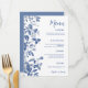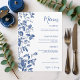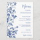 Classic Blue Toile Botanical Wedding Dinner Menu
