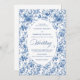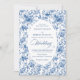 Classic Blue Toile de Jouy Roses Timeless Wedding Invitation