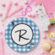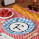 Provide your guests of your backyard BBQ picnic party with these classic plates featuring picnic ants over a blue and white gingham check pattern with your monogram or initial in a casual font style.