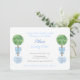 This 1st Birthday Party invitation was created to meet a request for a timeless design for this milestone event. The design features my handpainted topiary ball in a ginger jar planter adorned with floppy blue bow.