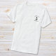 Nautical-themed boat captain's white t-shirt with an illustration of an anchor and their name and boat's name in modern lettering.