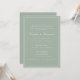 This classic wedding invitation features a soft sage green background, refined serif typography, and an elegant double-line border. The formal wording and balanced layout create a timeless, traditional feel while the muted color palette keeps it fresh and modern. Perfect for couples planning a garden, estate, or classic ceremony with a polished aesthetic. Designed for those who love elegant details without excess ornamentation.