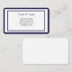 This business calling card is shown in a basic classic bordered design in white with navy blue border trims.