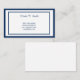 This calling card is shown in a basic classic bordered design in white with royal blue colour border trims and text.
