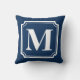 Add the perfect to your living room or bedroom with this classic monogram pillow featuring white classic frames with simple typography on a navy blue background. Personalise by adding one or two initials. This monogram pillow will be perfect as a personalised gift.