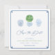 Timeless blue white and green design featuring handpainted ginger jar pottery and boxwood topiary. This is complemented by a "Greek Key" border and pattern backer. I've set the template up for a Save the Date for a wedding invitation but all of the text fields are customisable to your needs. You won't be able to edit the "Save the Date" font yourself. If you need this with other text, please send me a message. You can move, delete or add text fields by entering the design tool. You can also change the contrast colour of the Greek Key border on the front and the pattern on the back (shown here as a dark blue) to any colour you like by entering the design tool (underneath the text customisation area, click to "customise further") then changing the background colour on each side.