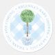 Classic Boxwood Topiary Blue Baby Shower Thank You Round Sticker