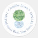 This flexible sticker design features a classic boxwood ball topiary in a ginger jar planter surrounded by a circular text border. Shown here for a return address label but all of the text fields are flexible to your needs eg could be a thank you favour sticker.