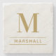 Classic Brass Gold Serif Monogram Name Stone Coaster