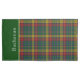 Stylish plaid King pillow case with the traditional red, green, yellow Buchanan clan Tartan pattern. A green and white hem, on the end of the case, has white custom text, on the front of the pillow. Personalise the text to read what you want.