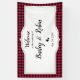 This design is classic and modern! It has a buffalo plaid pattern in black and red. You can customise the names and date of the wedding. If you want to change the font or size of the text, or add other text you can select "click to customise further" while personalising.