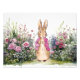 Classic bunny in a little pink jacket in a flower garden