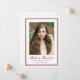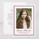 Announce your graduate’s achievement with this classic burgundy photo graduation announcement, designed with a distinguished double line border that frames the portrait with timeless elegance. The graduate’s photo is prominently displayed at the center, creating a strong and refined focal point, while their name appears below in flowing script for a personalized touch. Their school and graduation year are presented beneath in traditional serif lettering, adding balance and a formal academic feel. The reverse side includes space for a custom announcement message, making it easy to share their milestone and express your pride with loved ones. This burgundy graduation announcement is ideal for high school and college graduates and offers a sophisticated way to honor this important accomplishment.