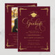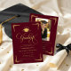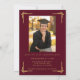 Celebrate a remarkable academic milestone with this classic burgundy and gold graduation invitation, designed with timeless elegance and formal sophistication. Featuring ornate gold script typography, decorative corner accents, and a graduation cap emblem, this invitation makes a striking statement for a high school or college graduate. The front presents a formal graduation announcement layout, perfect for highlighting the graduate’s name, class year, school, and degree. The back features a personalized graduate photo paired with a coordinated design for party details, making it ideal for a graduation open house, formal grad party, or commencement celebration. Honor this once-in-a-lifetime achievement with a personalized formal graduation invitation that feels polished, traditional, and truly unforgettable.