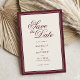 Create your own custom wedding save the date cards in a vintage classic old money aesthetic. Add your personalised details for your wedding day in elegant, timeless typography featured here in burgundy and cream colour design.