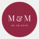 Classic Burgundy Red Monogram Typography Wedding Round Sticker