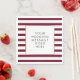 Chic stripe faux gold foil napkin with a classic burgundy and white stripe background. These elegant napkins feature an elegant faux gold foil border framing your special wedding message set in chic typography. Designed by Thisisnotme©