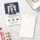 Make a professional impression with this classic identification badge design. Easily personalise it with your ID photo, name, job title, company name, and QR code. Space is provided for your logo and two accreditation symbols. All the text can be customised to suit your business needs. Printed colours: very dark navy blue, white and gold.