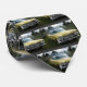 A tie with an artwork of a Yellow classic 1950's Cadillac .