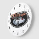 Purchased this online and it got delivered quickly. It was a present for my Dads 70th birthday. He loves clocks so decided to get him one with something written on it. Battery went in and it started working straight away. Dads had no issues with it. Printing was just how it came up online.
