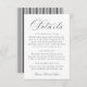 Present guests with essential wedding information with this classic charcoal gray wedding details card, featuring a timeless and understated design. Elegant calligraphy script paired with traditional serif lettering, creating a calm and sophisticated editorial layout. The soft charcoal gray color offers an ink-forward, modern-classic look, complemented by gray and white stripes on the back for a tailored finish. Ideal for formal weddings, church ceremonies, and black-tie celebrations, this wedding information card provides a polished way to share accommodations, reception details, website information, or attire notes. Personalize the text to create a refined details card that coordinates seamlessly with a classic wedding invitation suite.