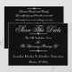elegant black background. Classic modern save the date cards, are perfect for announcing your wedding date. Classic Chic Script Names B & W