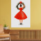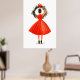 This elegant design features a woman in a festive red dress, holding a beautiful holiday wreath decorated with a big red bow and winter greenery. Perfect for adding a touch of vintage holiday charm and style to any product!