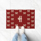 A classic monogram doormat featuring an elegant bow pattern on a festive red background. Perfect for the holidays.