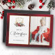 This elegant and formal yet festive holiday design features classic hand-drawn gold floral crest accented by a colourful spray of red and white Christmas flowers and evergreens. This custom template includes editable text fields and photo template as well as custom calligraphy text graphic and a luxe red gradient background.