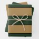 Gift Giving Package Wrapping Paper set of 3 sheets with 2 Solid Colours and 1 printed with a Classic Christmas Green And Gold Stripes graphic art design illustration by TheFabricSeal print on demand shop at Zazzle.com #ZazzleMade ©️Original. https://www.zazzle.com/store/thefabricseal