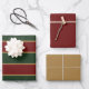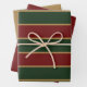 Gift Giving Package Wrapping Paper set of 3 sheets with 2 Solid Colours and 1 printed with a Classic Christmas Green And Red With Gold Trim graphic art design illustration by TheFabricSeal print on demand shop at Zazzle.com #ZazzleMade ©️Original. https://www.zazzle.com/store/thefabricseal