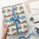 Traditional elegant design for wrapping paper featured classic greenery wreath with holly berries on a white background.
