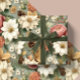 Classic Christmas Pink and Sage Green Floral Gift Wrapping Paper