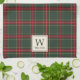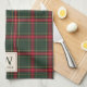 Classic Christmas Plaid Family Name Monogram Tea Towel