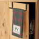 Custom-designed decorative kitchen hand towel for the holiday season featuring classic style Christmas plaid with personalised family name monogram design.