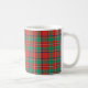 Coffee mug with a classic Christmas plaid pattern in bright red, seafoam green, royal blue, and yellow, with black and white accents. Matching teapot and teacups available.