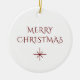 Simple Christmas snowflake ceramic ornament, with a minimalist typography design. With red lettering, you can add your own text. A classic and tasteful gift or tree accent this holiday season.
