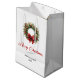 Celebrate the season of giving with this elegant Christmas wreath gift bag, featuring a classic watercolor design of pine branches, holly berries, and pine cones, accented with a red and green plaid pattern. The timeless red, green, and gold color palette adds a warm, festive touch that pairs beautifully with any holiday gift. Designed in a minimalist rustic style, this bag blends tradition and elegance perfectly. Personalize it easily with your family name or special message to make your presents extra meaningful. Perfect for gifting during Christmas gatherings, parties, and celebrations — a lovely way to wrap your holiday cheer with style and charm.