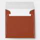 Square envelope in a warm cinnamon hue, featuring a pre-printed white two-line return address.