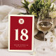 Classic Red Double Lined Ivory/Cream/Beige Round Circle Double Happiness On A Red Background, Double Sided Chinese Wedding Table Number Card.