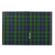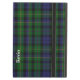 Stylish iPad Air case, with built in stand, done in the classic green, blue, black, yellow, and red clan MacBride tartan plaid pattern. White custom text, on the left front, is ready to personalise for yourself or as a great gift idea.