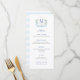 This elegant blue and white menu design features my own watercolor illustrations (the crest and watercolor banner). Shown here for a Wedding but with a few small changes, this design would work beautifully for a christening / baptism or adult birthday party menu.