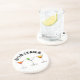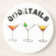 Sandstone coaster features an original marker illustration of a classic martini, cosmo, and Manhattan cocktail.