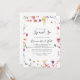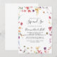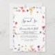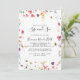 This classic colourful wild floral sip and see invitation is perfect for a rustic meet the baby party. The design features a yellow, purple, white wild flowers with foliage in a rose and green watercolor background.
