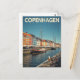 This classic-style card features the iconic Nyhavn Harbour in Copenhagen, Denmark. The design captures the charming, brightly coloured townhouses lining the canal with traditional boats moored along the waterfront. The clear blue sky and simple, bold typography give it a timeless and clean look. It's the perfect card for a travel enthusiast or a special greeting from Denmark.