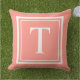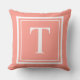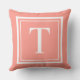 Classic Coral White Square Frame Monogram Cushion